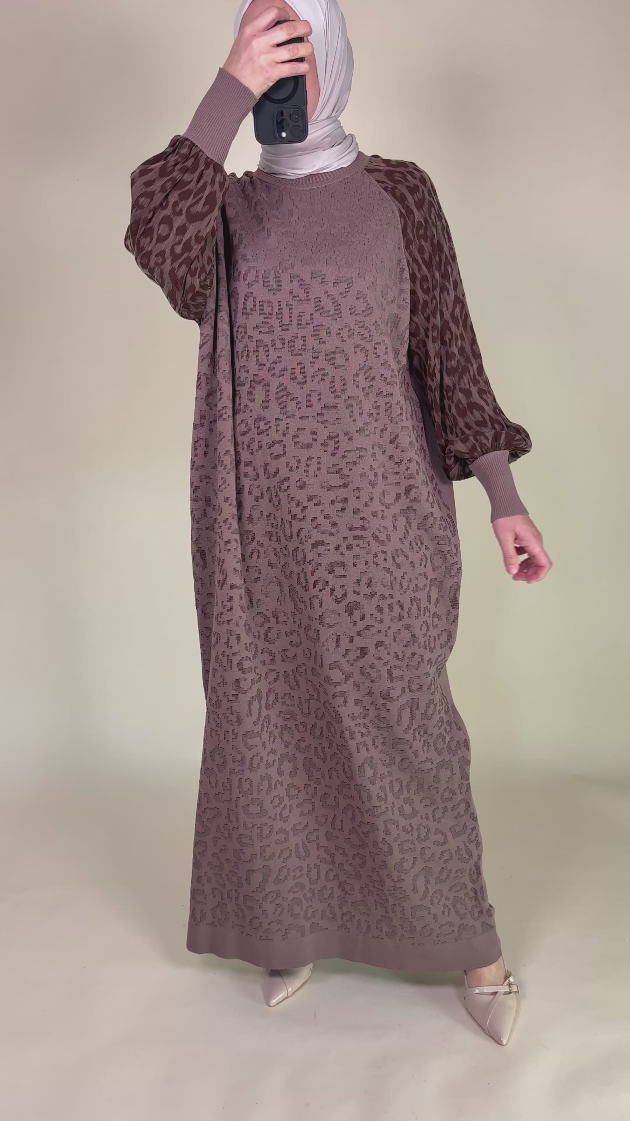 Leichtes Kleid aus hochwertiger, merzerisierter Baumwolle. Der vordere Bereich und die Ärmel sind mit einem dezenten Leo-Muster versehen, das dem Look einen modernen Touch verleiht. Die Ärmel sind mit elastischem Gummiabschluss gestaltet, sodass sie angenehm sitzen und sich anpassen. Das Kleid überzeugt durch seinen lässigen Schnitt und eignet sich perfekt für besondere Anlässe.